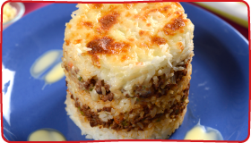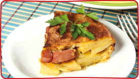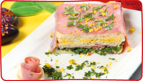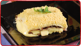 PASTEL MANDI’O RELLENO DE JAMÓN Y HUEVO