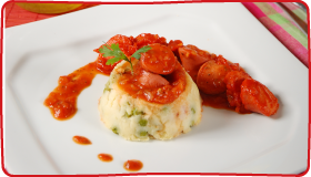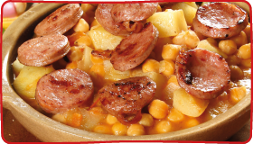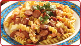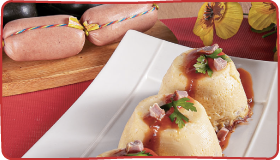 POLLO RELLENO DE JAMÓN, QUESO Y CHORIZOS KNACKER