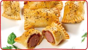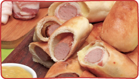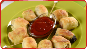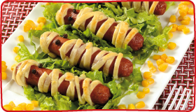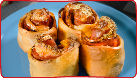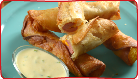 ROLLS DE CHORIZOS CON MOSTAZA Y CEBOLLITAS
