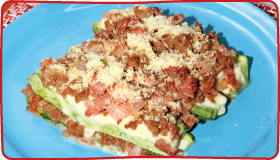 PASTEL DE CREPS CON MORTADELA Y TOMATE