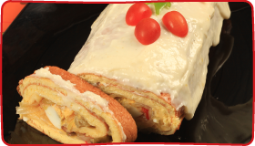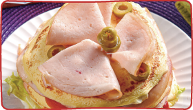 TORRE DE PANQUEQUES CON JAMÓN COCIDO DE POLLO Y VEGETALES