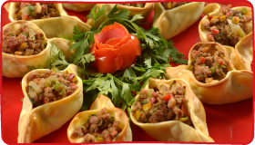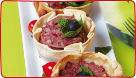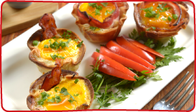 CANASTITAS DE JAMÓN, PANCETA Y HUEVO